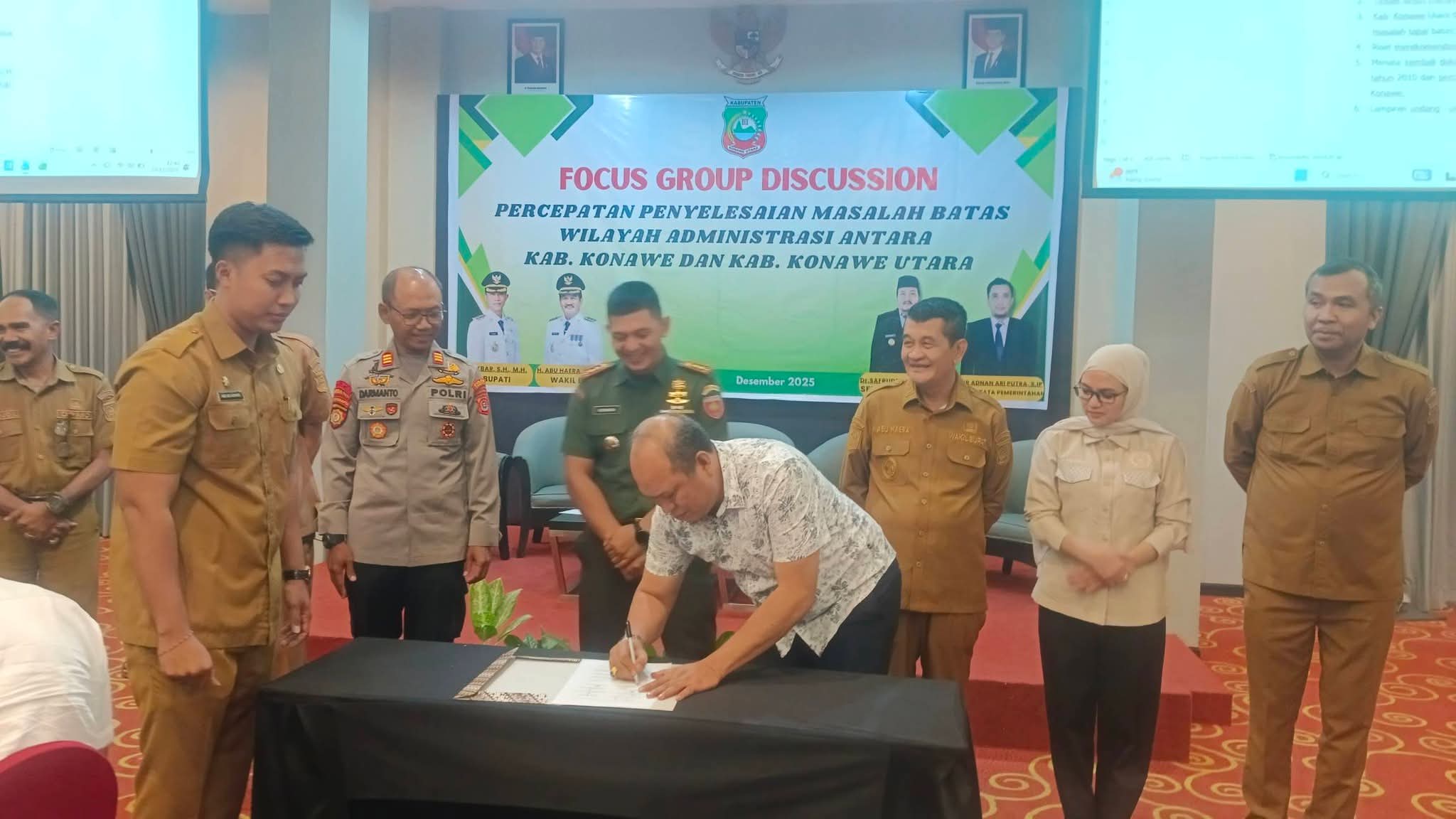 Kendari, Sentralsultra.com – Pemerintah Daerah Kabupaten Konawe Utara (Pemkab Konut) menggelar Focus Group Discussion (FGD) terkait Percepatan Penyelesaian Masalah Batas Wilayah Administrasi antara Kabupaten Konawe dan Kabupaten Konawe Utara, Selasa (23/12/2025). Kegiatan ini menjadi forum strategis untuk mempercepat penegasan batas wilayah secara administratif, prosedural, dan berbasis data yang akurat.