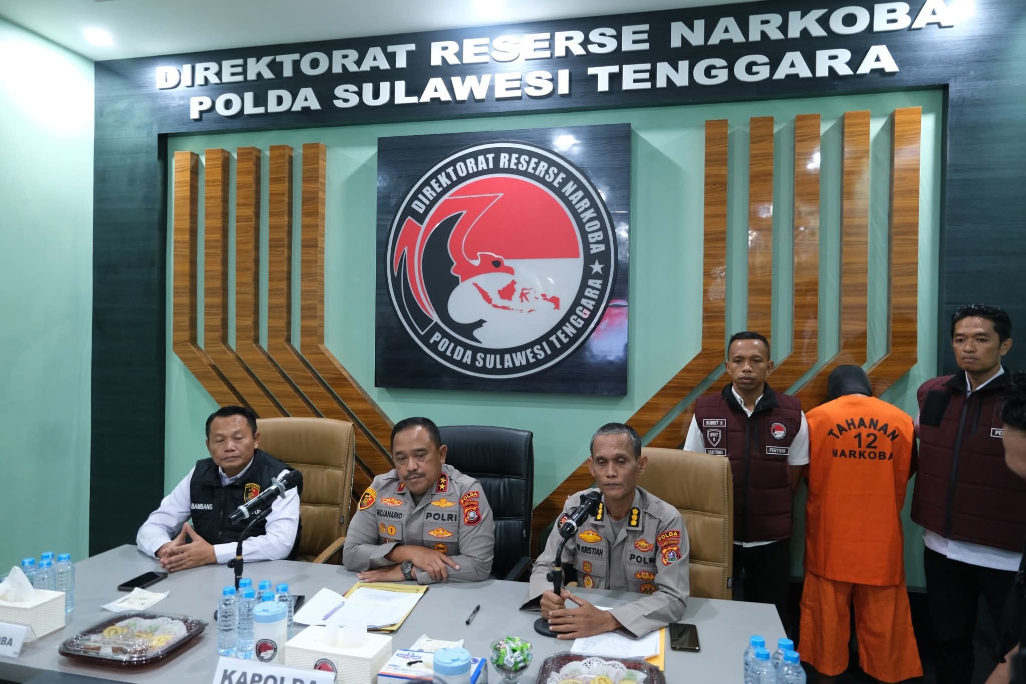 Kapolda didampingi oleh Direktur Reserse Narkoba Polda Sultra, Kombes Pol Bambang Sukmo Wibowo, S.I.K., S.H., M.Hum., serta Kabid Humas Polda Sultra, Kombes Pol Iis Kristian, S.I.K.