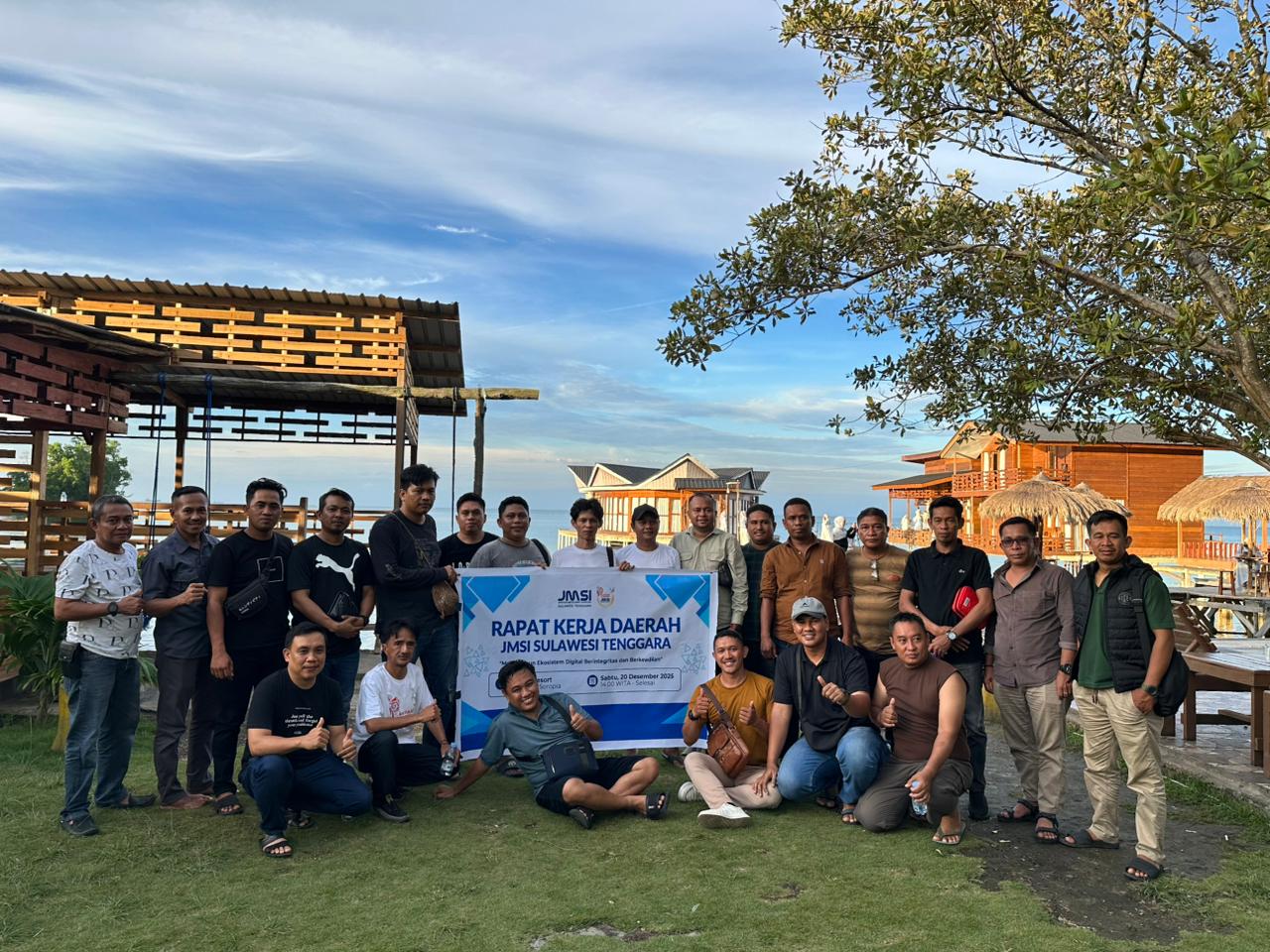 Setelah melantik Pengurus Cabang (Pengcab) JMSI Kolaka Raya dan Pengcab JMSI Kota Kendari, Ketua JMSI Sultra, Adhi Yaksa Pratama, melanjutkan kegiatan dengan menyelenggarakan Rapat Kerja Daerah (Rakerda) yang digelar di Delisha Resort, Kabupaten Konawe, Sabtu, 20 Desember 2025.